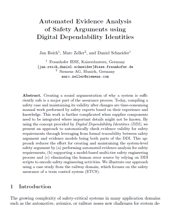 need to be integrated where important details might not be known. By using the concept provided by Digital Dependability Identities (DDI), we present an approach to automatically check evidence validity for safety requirements through leveraging from formal traceability between safety argument and evidence models being both parts of the DDI. This approach reduces the effort for creating and maintaining the system-level safety argument by (a) performing automated evidence analysis for safety requirements, (b) supporting a model-based multi-tier safety engineering process and (c) eliminating the human error source by relying on DDI scripts to encode safety engineering activities. We illustrate our approach using a case study from the railway domain, which focuses on the safety assurance of a train control system (ETCS).