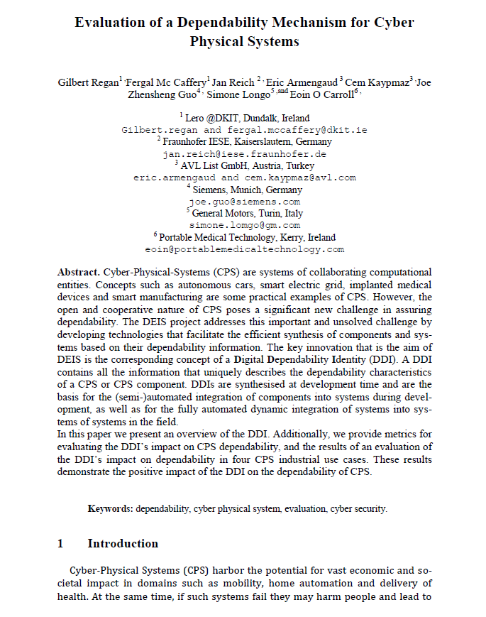 Cyber-Physical-Systems (CPS) are systems of collaborating computational entities. Concepts such as autonomous cars, smart electric grid, implanted medical devices and smart manufacturing are some practical examples of CPS. However, the open and cooperative nature of CPS poses a significant new challenge in assuring dependability. The DEIS project addresses this important and unsolved challenge by developing technologies that facilitate the efficient synthesis of components and systems based on their dependability information. The key innovation that is the aim of DEIS is the corresponding concept of a Digital Dependability Identity (DDI). A DDI contains all the information that uniquely describes the dependability characteristics of a CPS or CPS component. DDIs are synthesized at development time and are the basis for the (semi-)automated integration of components into systems during development, as well as for the fully automated dynamic integration of systems into systems of systems in the field.