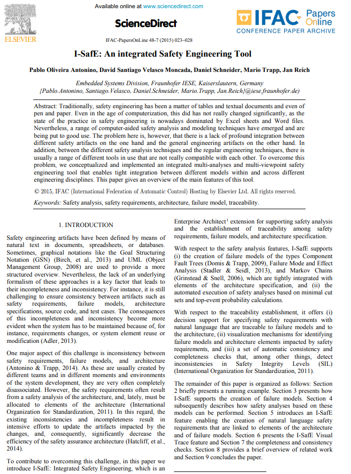 I-SafE was one of the predecessor names of the tool we are today developing farther as safeTbox™, so this paper described a set of functionalities we used to have or still have in our tool.
